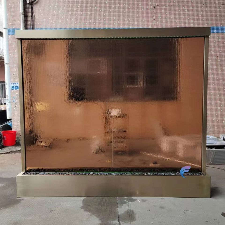 น้ำพุตกแต่งสวนในร่มสำนักงานพร้อมกรอบสแตนเลสและกระจก
