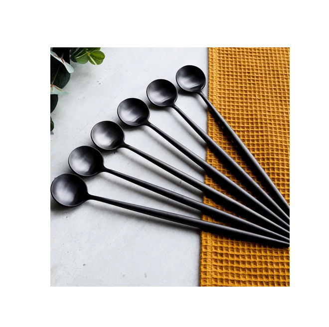 ช้อนชาสแตนเลสด้ามยาวช้อนแบนขนาดเล็กสำหรับตีสไตล์สำหรับกาแฟและปาร์ตี้