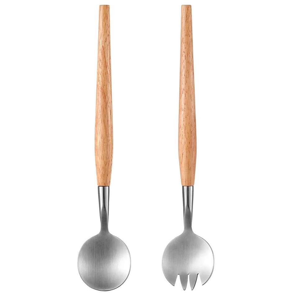 ชุดเซิฟเวอร์สลัดมือจับสีดำทำจากสแตนเลสช้อนตักเสิร์ฟส้อมช้อนสลัดอุปกรณ์ในครัว