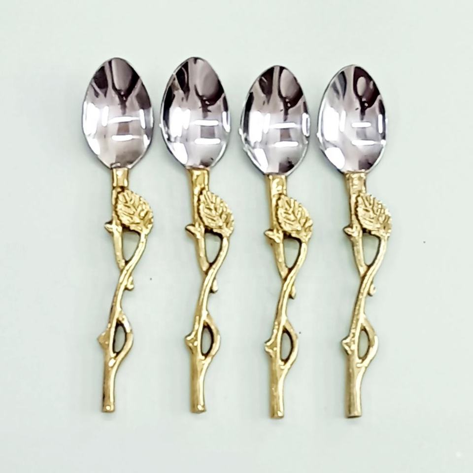 ชุดช้อนสแตนเลสสีเงินพร้อมก้านทองเหลืองที่เป็นเอกลักษณ์พร้อมด้ามจับใบอุปกรณ์ครัวสแตนเลส