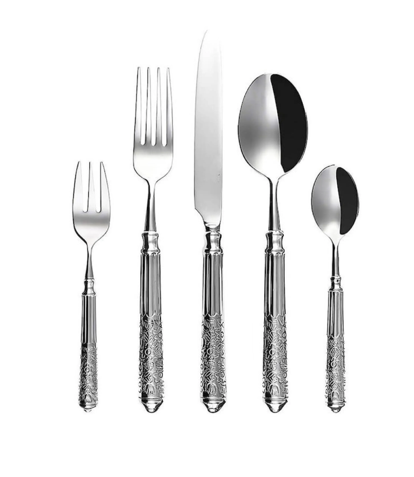 ชุดเครื่องใช้บนโต๊ะอาหารทำจากเหล็กสะท้อนแสงสำหรับงานแต่งงานบ้านครัวอาหารดีไซน์น่าทึ่งมีด้ามจับ