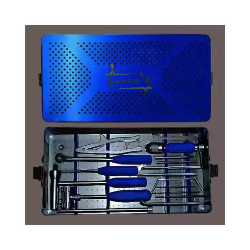 ชุดเครื่องมือผ่าตัดออร์โธปิดิกส์สแตนเลสพร้อมแหล่งจ่ายไฟแบบแมนนวลเล็บยืดหยุ่นไทเทเนียมพร้อมเครื่องมือสำหรับศัลยกรรมกระดูก