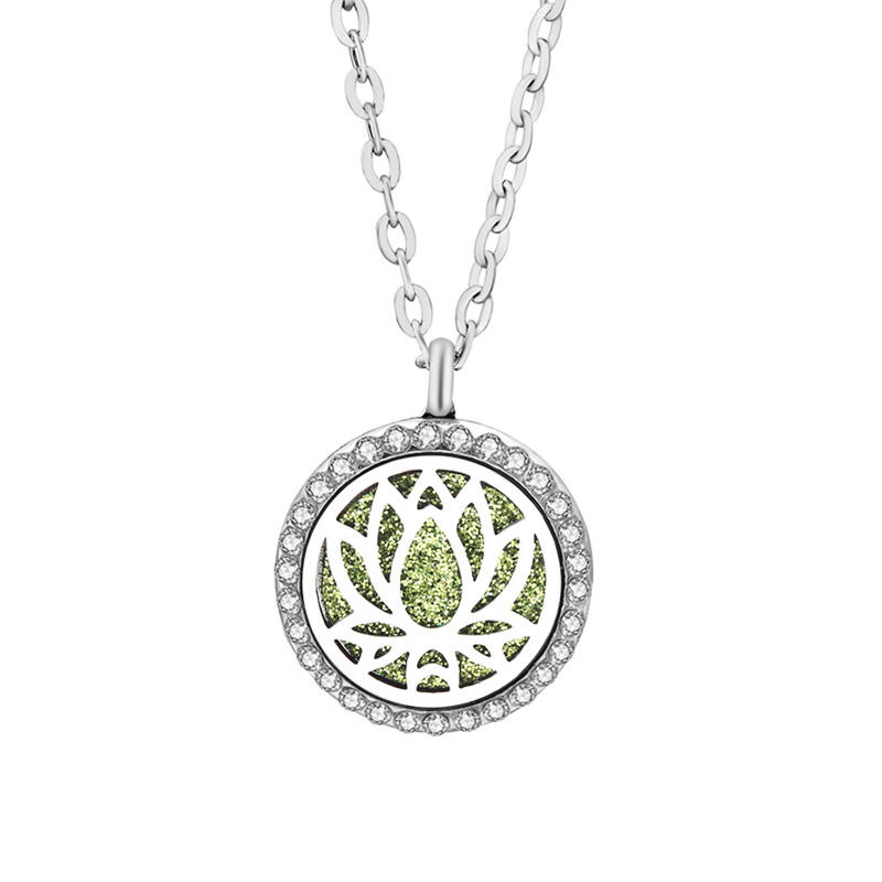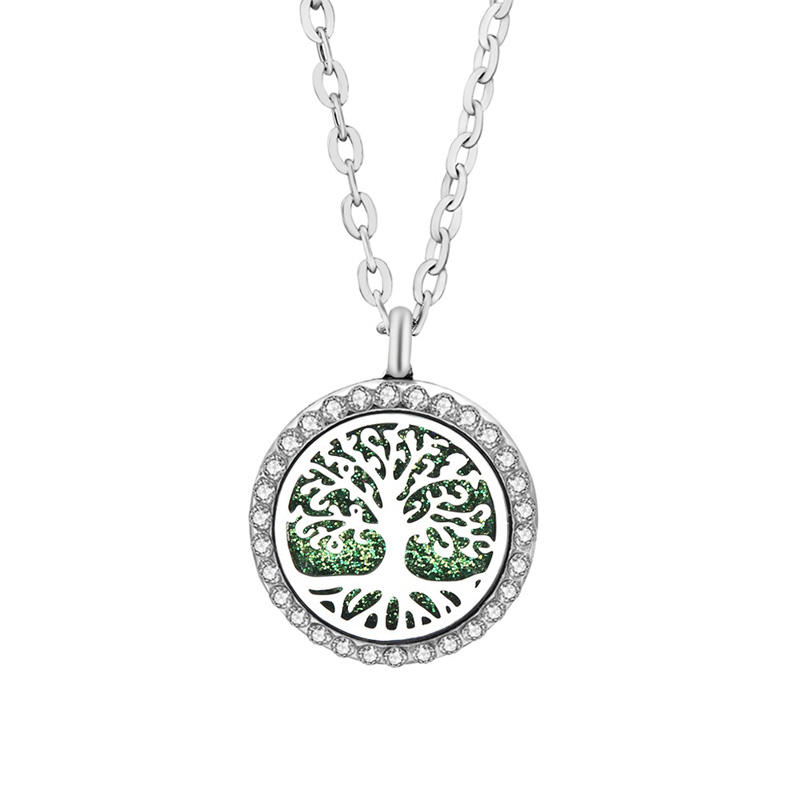 สร้อยคอจี้อะโรมาเธอราพีรูปต้นไม้แห่งชีวิตสแตนเลสสตีลประดับเพชร
