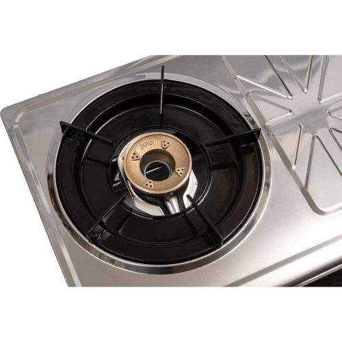 ตัวเครื่องสแตนเลส ทนทาน เตาแก๊สแบบตั้งโต๊ะสองหัวเตา หน้าเตาพลาสติก สำหรับใช้ในครัวเรือนและโรงแรม