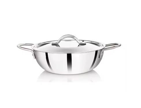 หม้อปรุงอาหารสเตนเลสสตีลพร้อมฐานห่อหุ้มอลูมิเนียมเพื่อการกระจายความร้อนได้อย่างมีประสิทธิภาพ