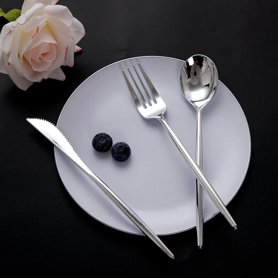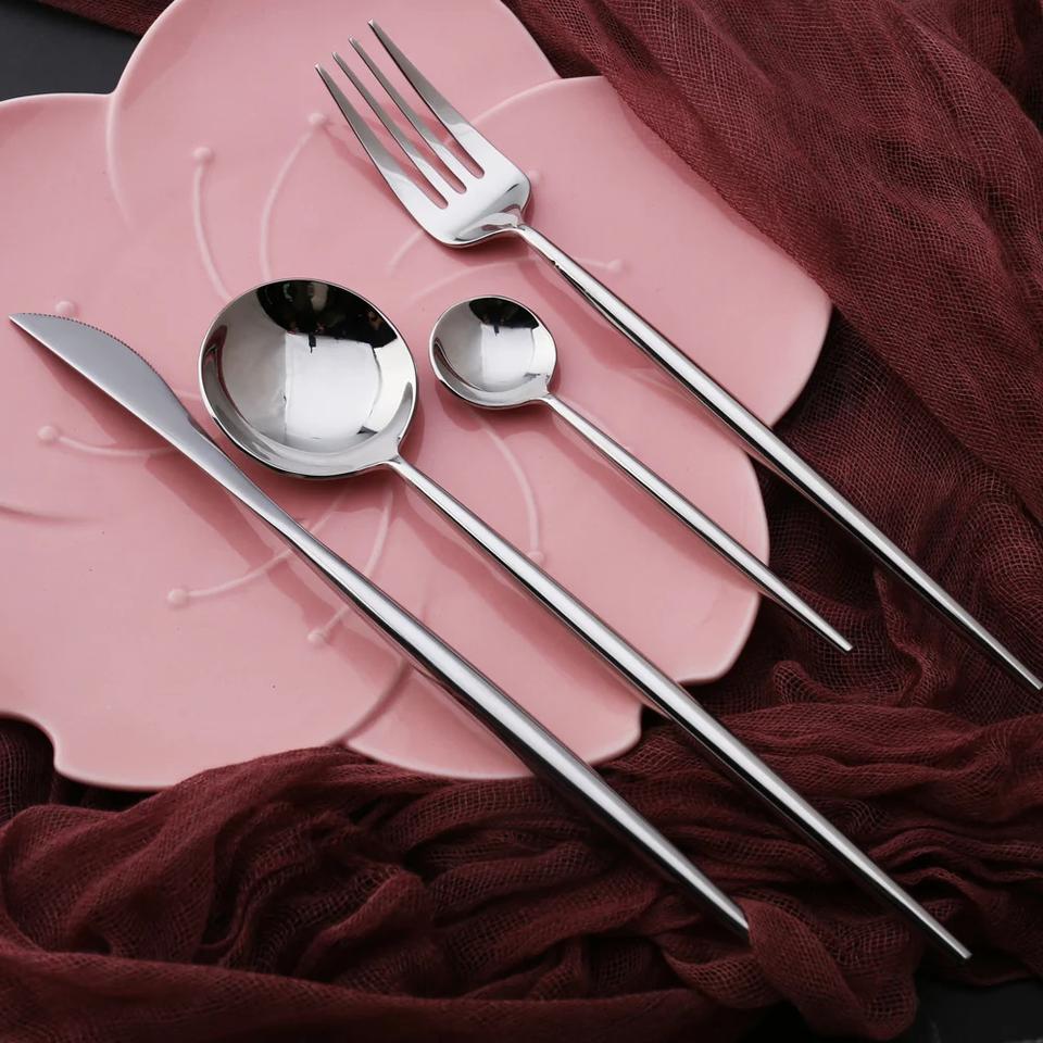 ชุดช้อนส้อมสแตนเลสสีเงินทำขึ้นเพื่อเพิ่มความสง่างามและความยิ่งใหญ่ให้กับงานแต่งงานงานเลี้ยงและงานเลี้ยงอาหารสุดหรู