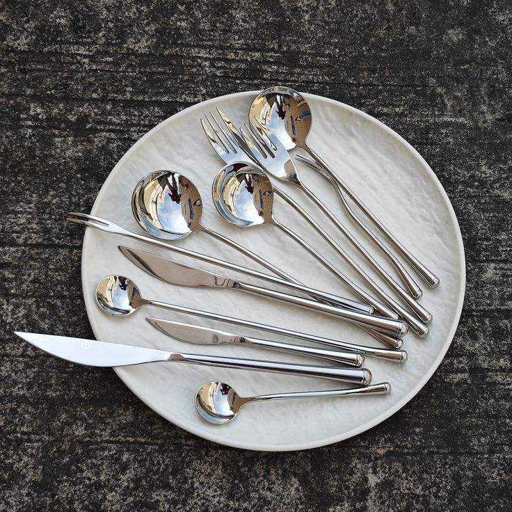 ชุดช้อนส้อมสแตนเลสที่มีสไตล์หรูหราทันสมัยและการออกแบบที่สะอาดผลิตขึ้นสำหรับร้านอาหารระดับพรีเมียมหรือห้องรับประทานอาหารส่วนตัว