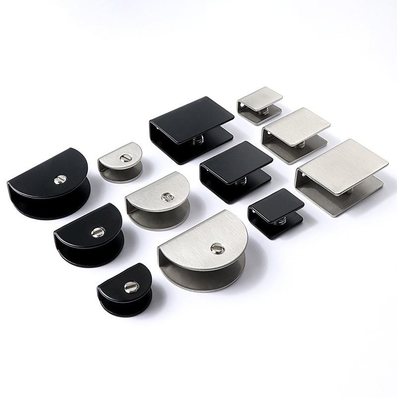 Stainless Steel Glass Clamping Support & Accessory for Furniture Cabinet-Silver Modern Simple Design Easy Installation & Strong