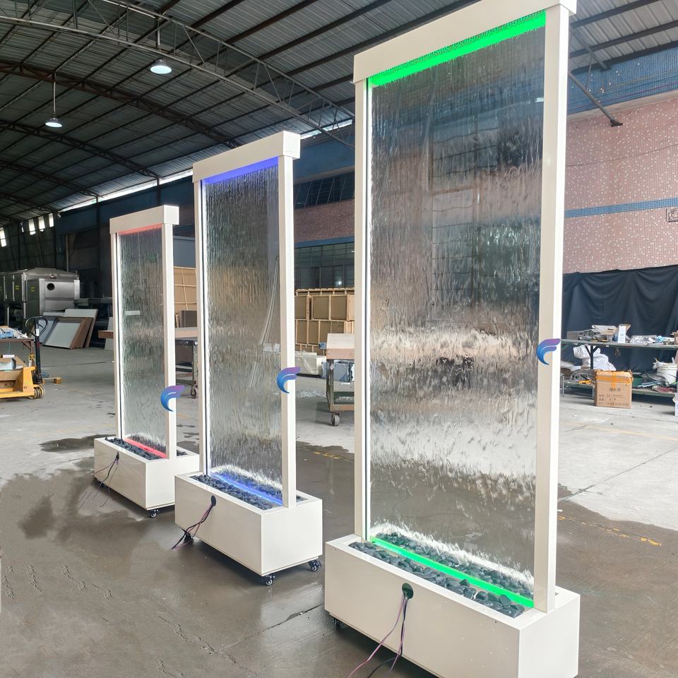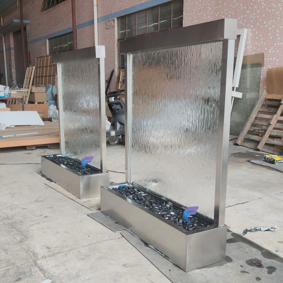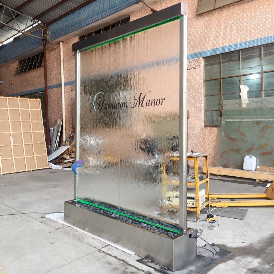 น้ำพุติดผนังสแตนเลสสำหรับตกแต่งภายในอาคาร น้ำพุแบบแขวนผนังพร้อมกระจก น้ำพุแบบไหลผ่านกระจก