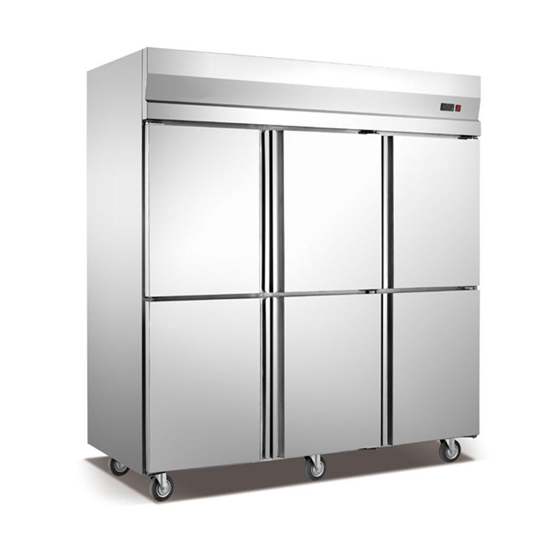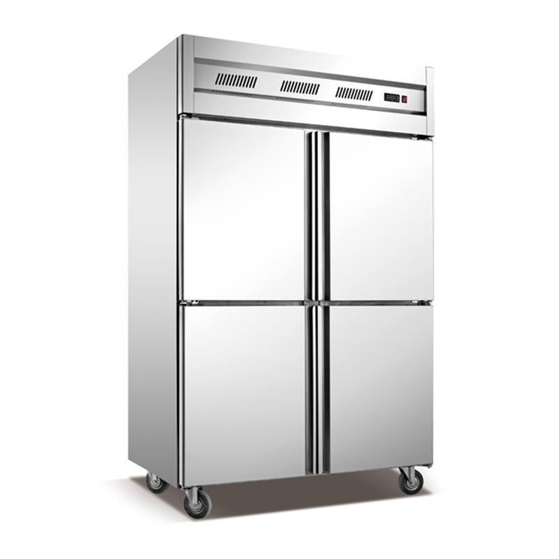 ตู้เย็นสแตนเลสแบบสองอุณหภูมิสำหรับธุรกิจ-ตู้แช่แข็งแบบตั้ง ระบบทำความเย็นด้วยอากาศ ละลายน้ำแข็งอัตโนมัติ ปรับได้