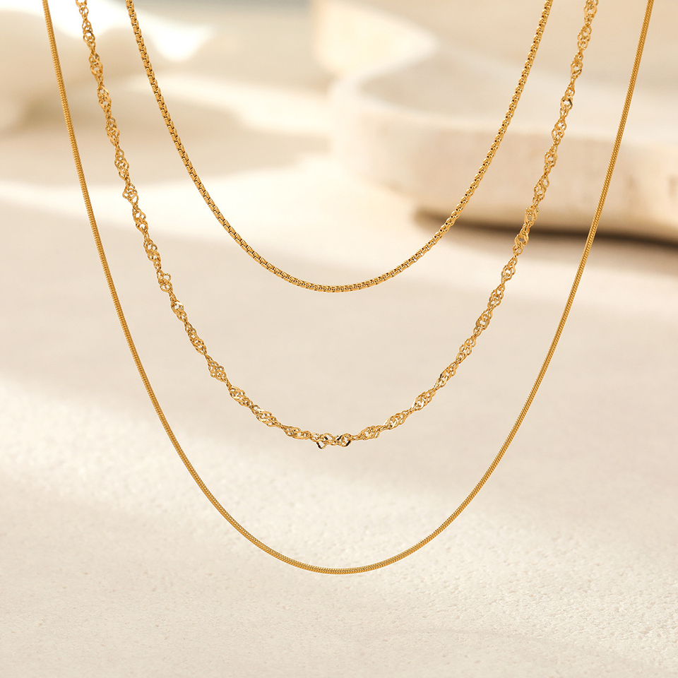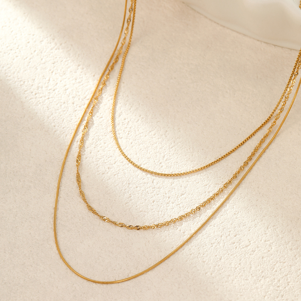 สร้อยคอสแตนเลส - ไม่ซีดจาง สร้อยคอผู้หญิงแบบเรียบง่ายสามเส้นซ้อนกัน สินค้าใหม่ประจำฤดูใบไม้ร่วง/ฤดูหนาว สร้อยคอ 18k