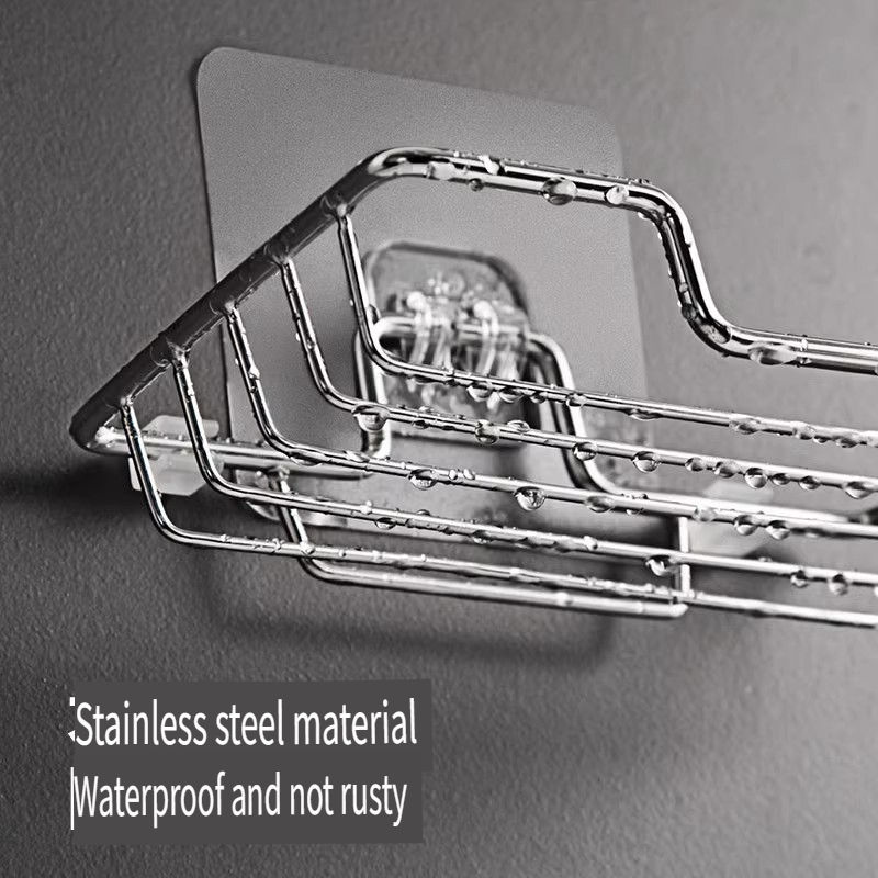 ชั้นวางสบู่สแตนเลสแบบไม่ต้องเจาะผนัง สองชั้น สำหรับแขวนในห้องน้ำ พร้อมที่ระบายน้ำ จากผู้ผลิต