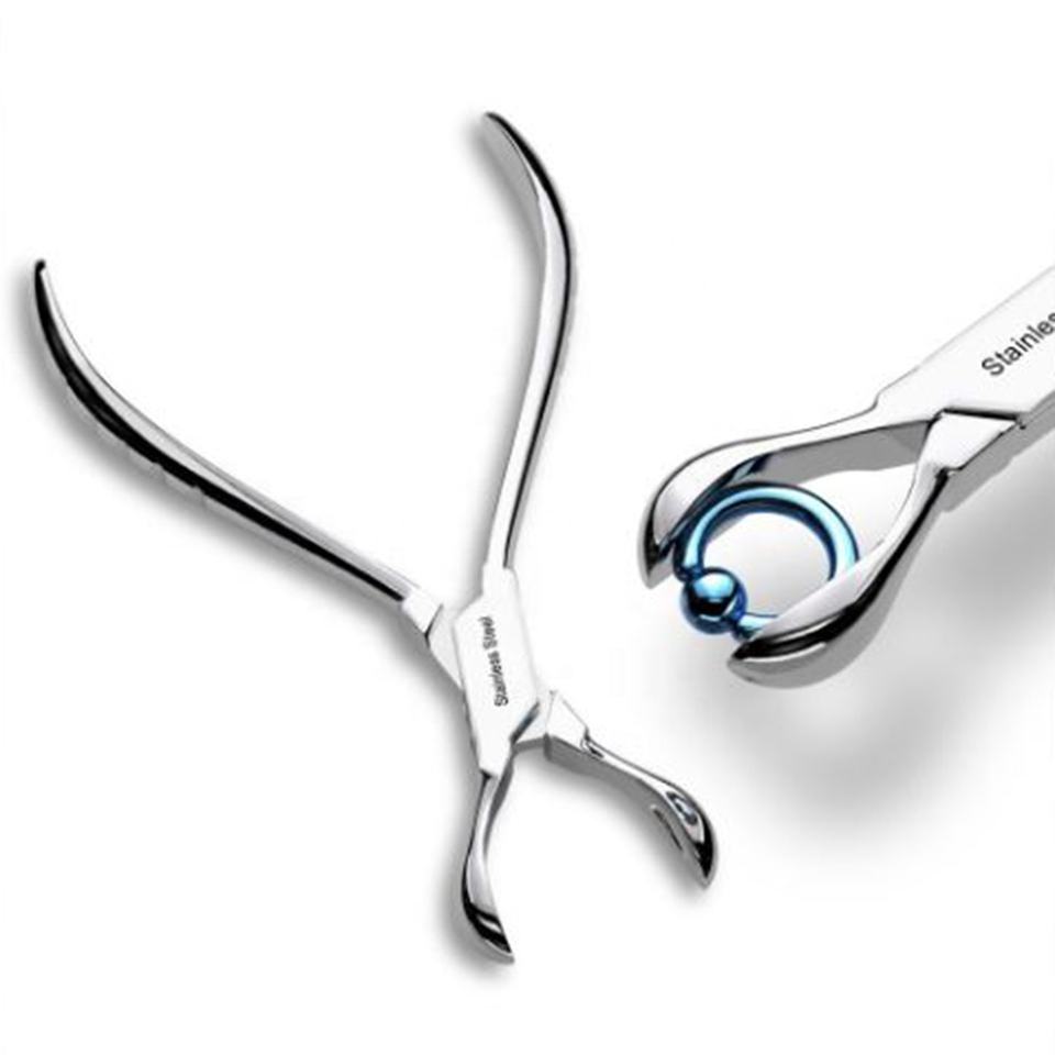 คีมปิดห่วงสแตนเลสสำหรับเครื่องประดับเจาะร่างกาย ขนาด 16 มม. สำหรับมืออาชีพ