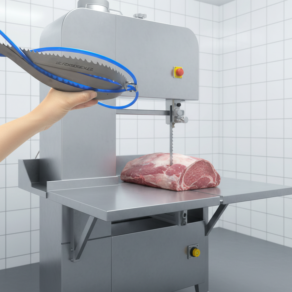 ใบเลื่อยสายพานสแตนเลสแบบฟันคมสำหรับตัดกระดูกและเนื้อสัตว์สด