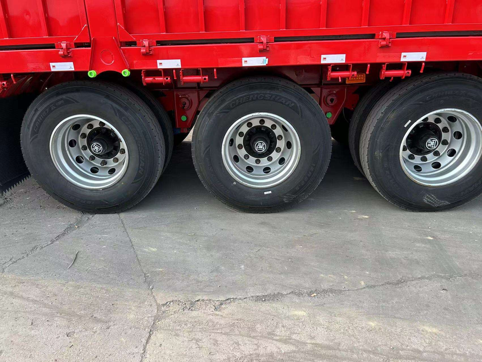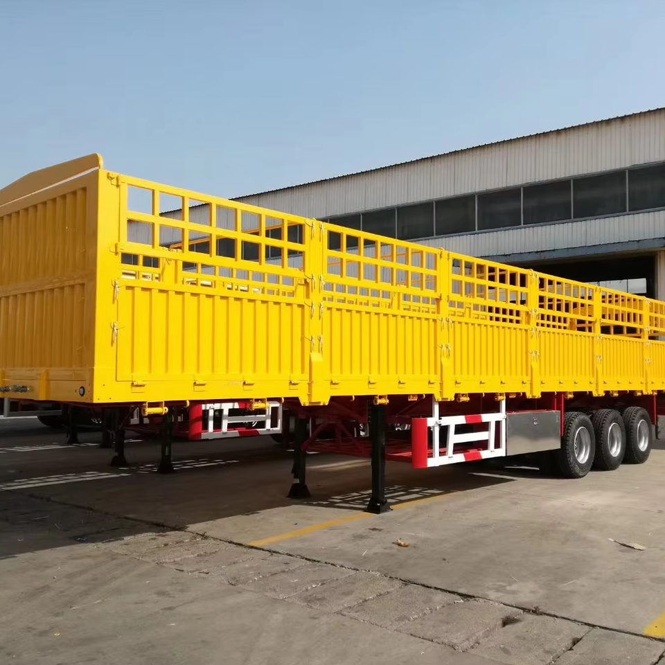 รถพ่วงกึ่งพ่วงแบบมีรั้วเหล็ก 3/4 เพลา ขนาด 9.5x2.5x3.5 เมตร รับน้ำหนักบรรทุก 5001-10000 กิโลกรัม
