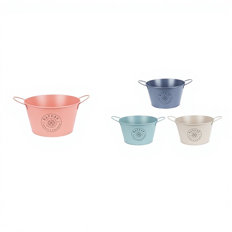 ถังโลหะปั๊มลายพร้อมหูหิ้ว-19Dx10.7Hx14B-12THx21.8TL ขนาดสำหรับตกแต่งบ้าน