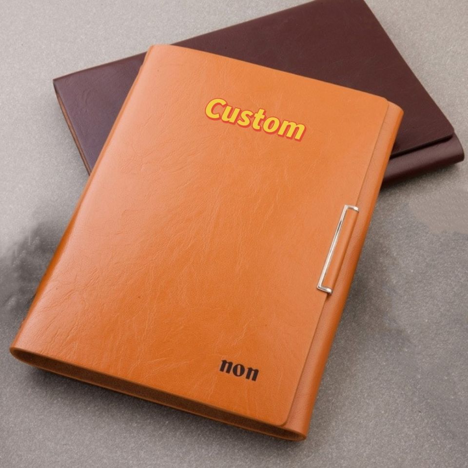 สมุดโน๊ตแบบหนีบหนัง6รูสำหรับประทับตราสีทองพร้อมปากกาและที่ใส่บัตร