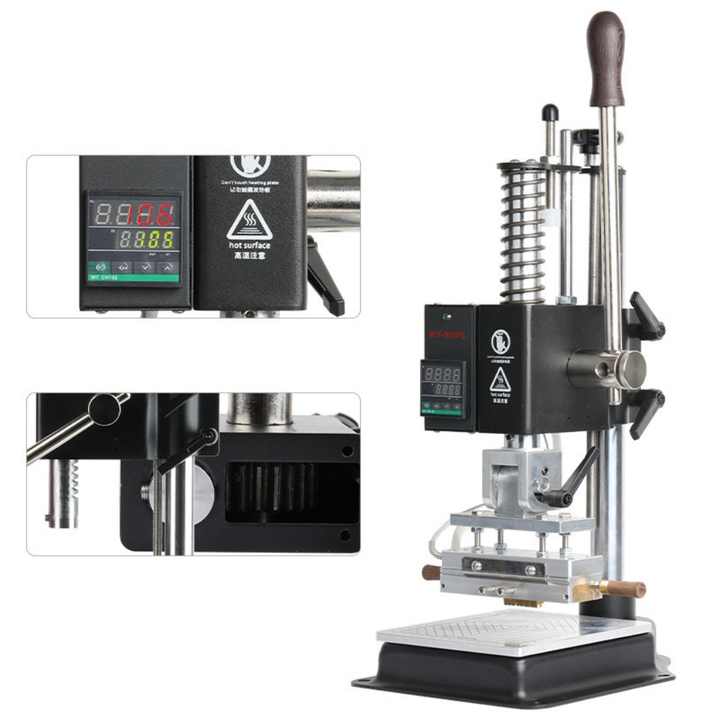 เครื่องปั๊มร้อนแบบมือถือ ราคาประหยัด สำหรับปั๊มฟอยล์ร้อนบนหนัง พิมพ์ลายโลโก้บนบัตร ปั๊มลายบนวัสดุ PU ขนาดเล็ก เครื่องปั๊มลายเหล็กแบบแมนนวล
