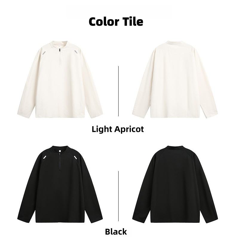 เสื้อยืดแขนยาวคอตั้งแบบซิปครึ่งตัวสำหรับผู้ชาย ดีไซน์สปอร์ต ผ้าเจอร์ซีย์ สะท้อนแสง ป้องกันแสงแดด ระบายอากาศ แห้งเร็ว เหมาะสำหรับการเล่นกีฬา
