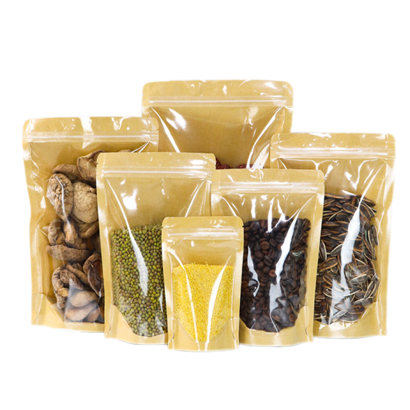 ถุงกระดาษคราฟท์แบบยืนขึ้นถุงบรรจุภัณฑ์ที่เป็นมิตรต่อสิ่งแวดล้อมสำหรับอาหารชากาแฟขนมเบเกอรี่สินค้าขายปลีกและขายส่ง