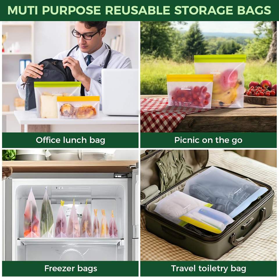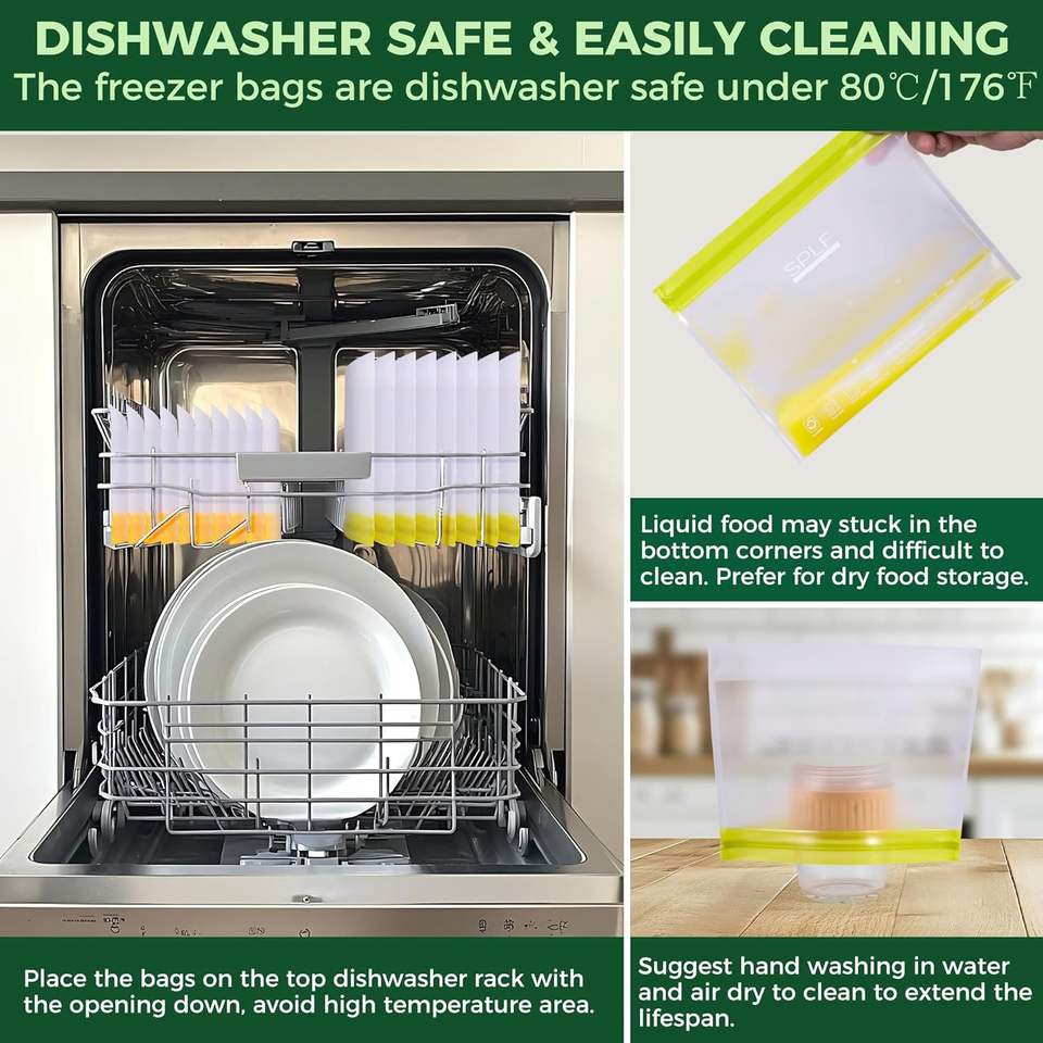 ถุงแช่แข็งแบบตั้งได้ ใช้ซ้ำได้ ขนาดควอร์ต ปลอดภัยสำหรับเครื่องล้างจาน ถุงเก็บอาหารแบบหนาพิเศษ