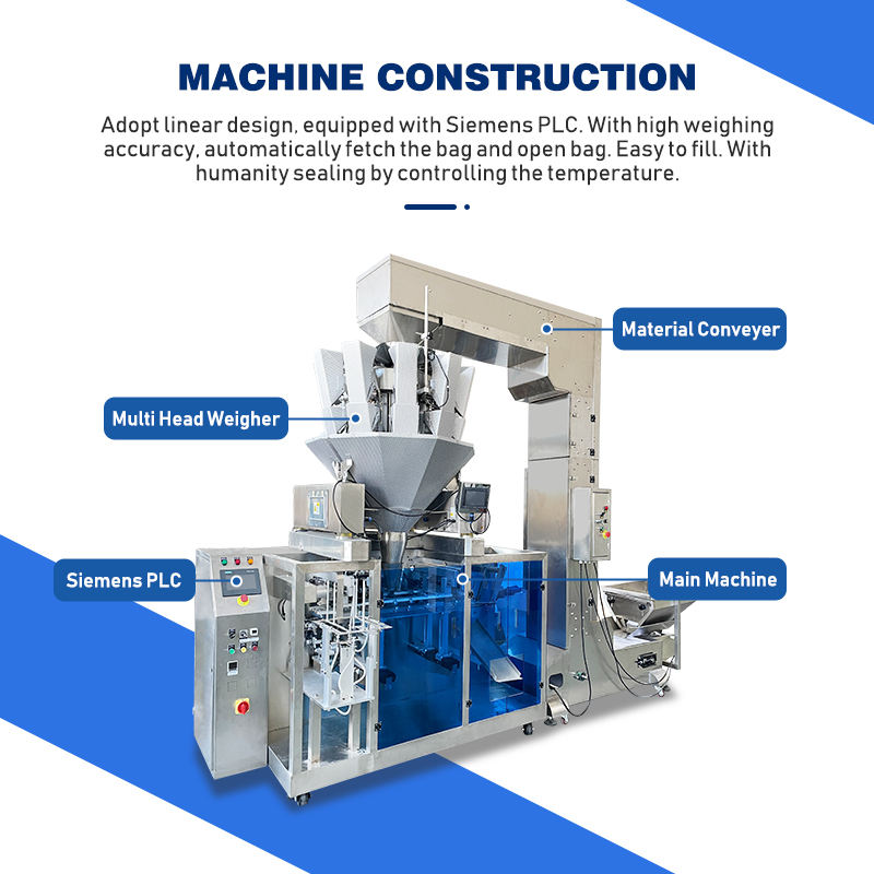 เครื่องบรรจุซอสเหลวอัตโนมัติเต็มรูปแบบเครื่องบรรจุถุงแบบตั้งใส่ถุงให้แป้ง/เม็ด