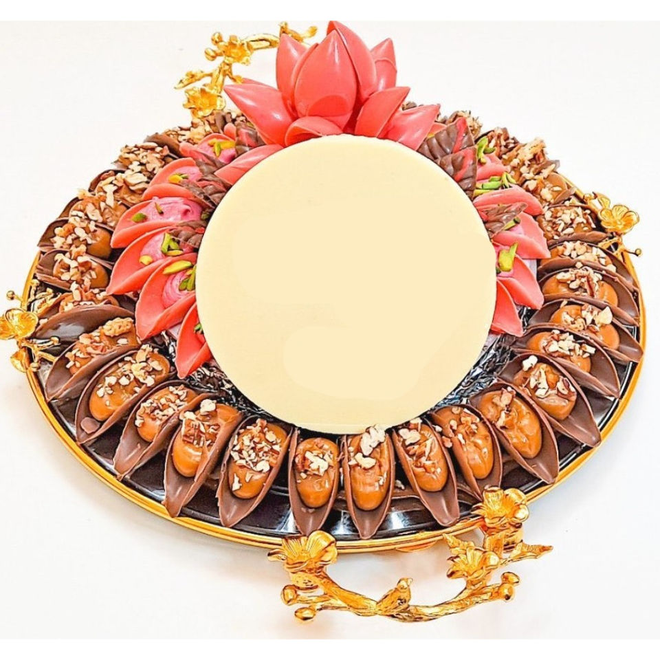 ถาดช็อคโกแลตตกแต่งแบบมาตรฐานถาดโลหะช็อคโกแลตพร้อมด้ามจับถาดเสิร์ฟขนมสำหรับวันเกิดและงานอีเวนต์