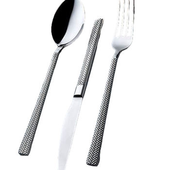 ชุดช้อนส้อมมีดสแตนเลสสีเงินพร้อมกระจกชุดเครื่องใช้บนโต๊ะอาหารดีไซน์มาตรฐานเหมาะสำหรับใช้ในร้านอาหาร