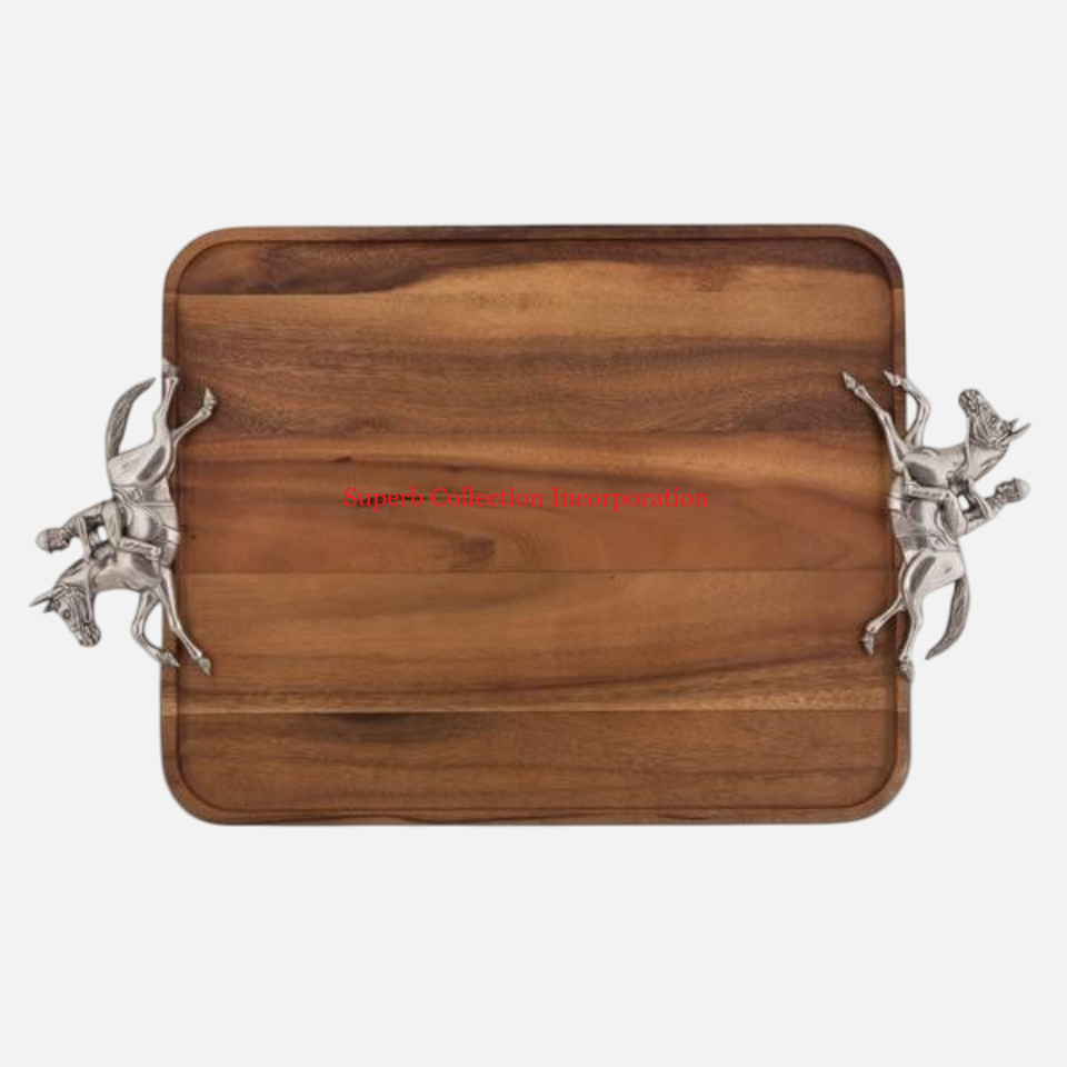 ถาดไม้สำหรับจัดโต๊ะในโรงแรมถาดไม้หูจับเต่าสีเงินพร้อมบริการชาและกาแฟดีไซน์มาตรฐาน