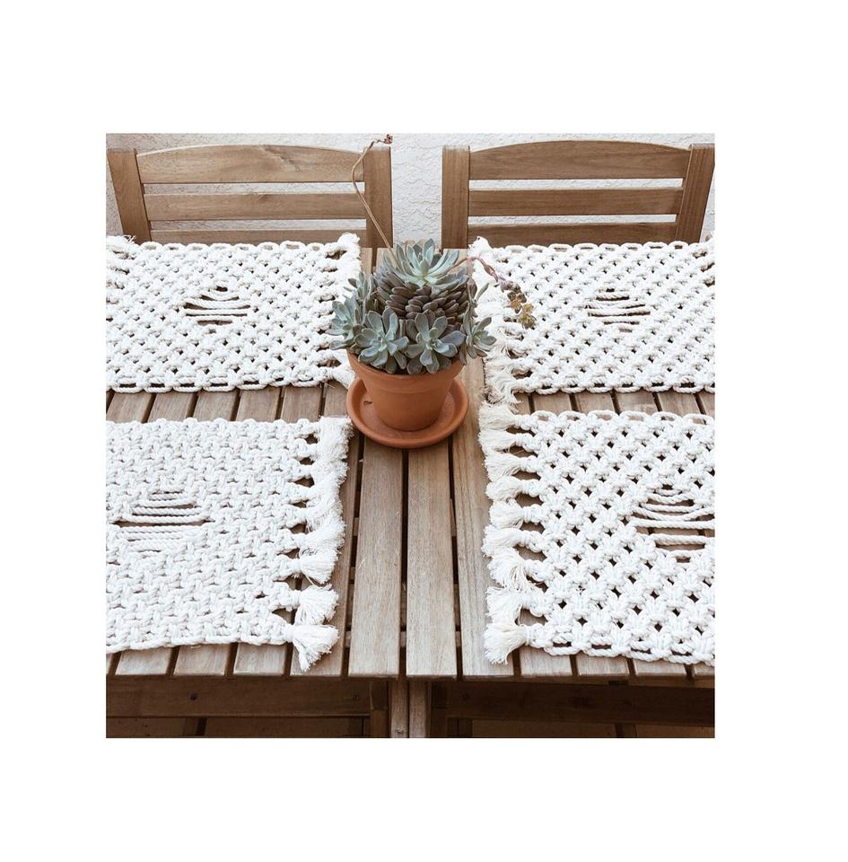 แผ่นรองจานแมคคราเม่ดีไซน์แบบมาตรฐานเครื่องใช้บนโต๊ะสีแฟนซีรูปทรงตามสั่งตกแต่งตามธรรมชาติ