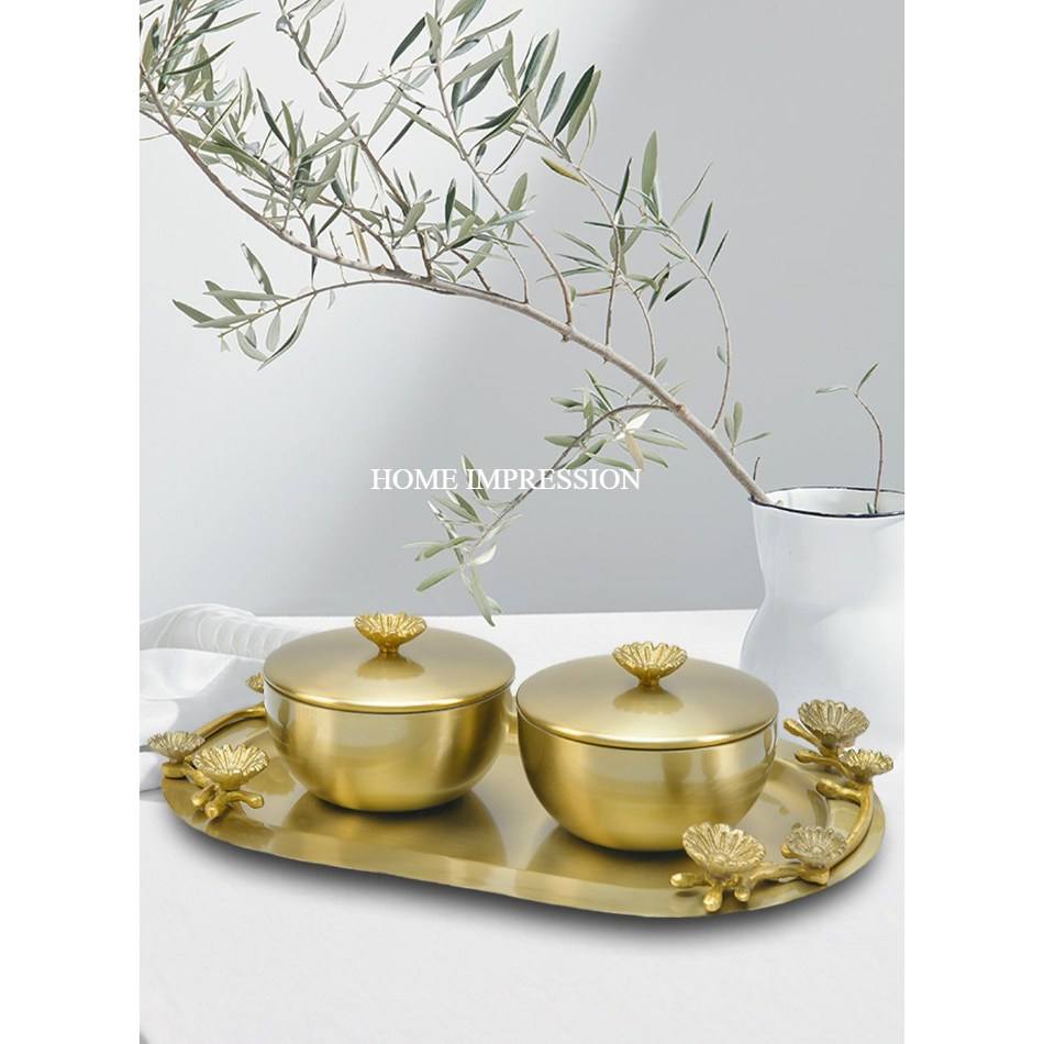 ชามเสริฟอาหารสีทองดีไซน์มาตรฐานสำหรับตกแต่งโต๊ะอาหารเครื่องใช้ในครัวโรงแรม