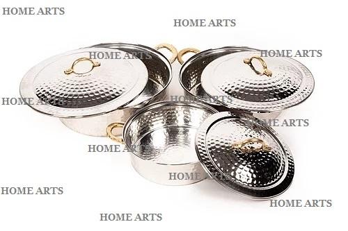 จานเสิร์ฟอาหารสแตนเลสแบบตอกลาย รูปทรงกลม ขนาดสั่งทำได้ โดย Home Arts
