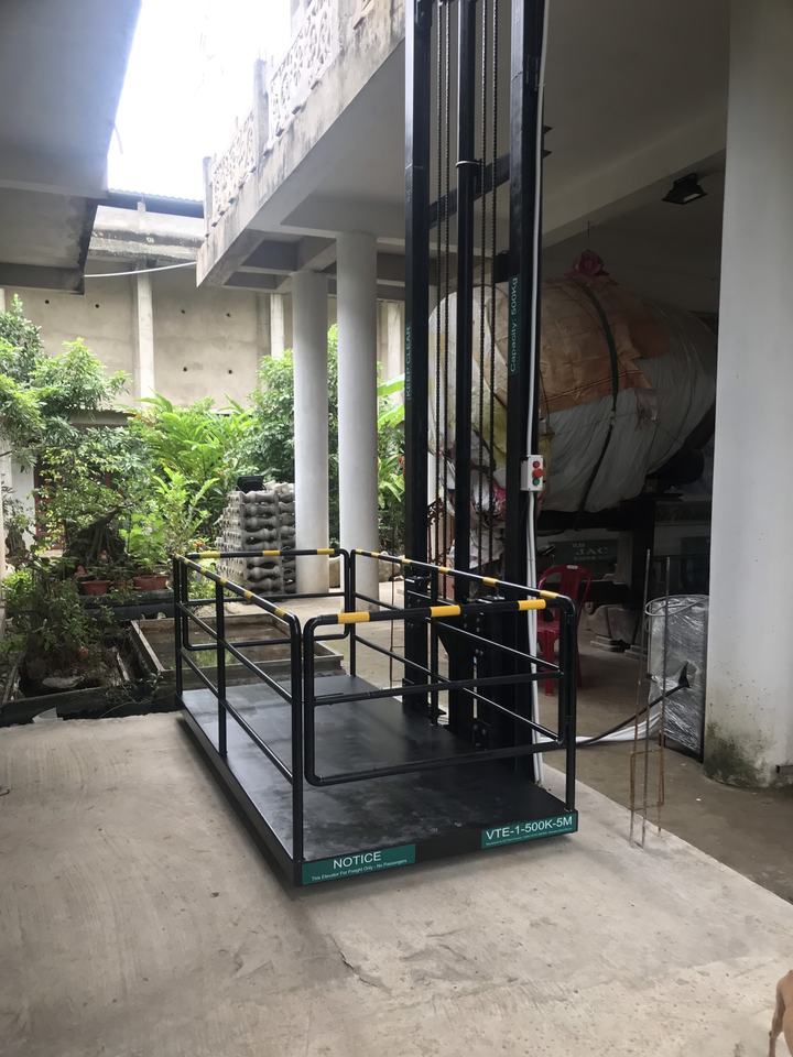 ชื่อสินค้า:VTE-1-500K-5M: ลิฟต์ขนส่งสินค้าไฮดรอลิก - รับน้ำหนัก 500 กก. - ความสูงสูงสุด 5 เมตร