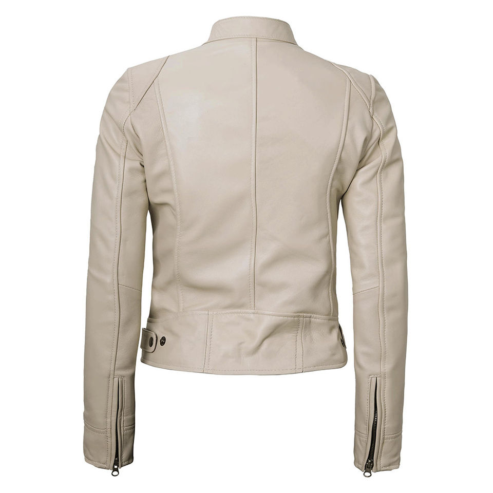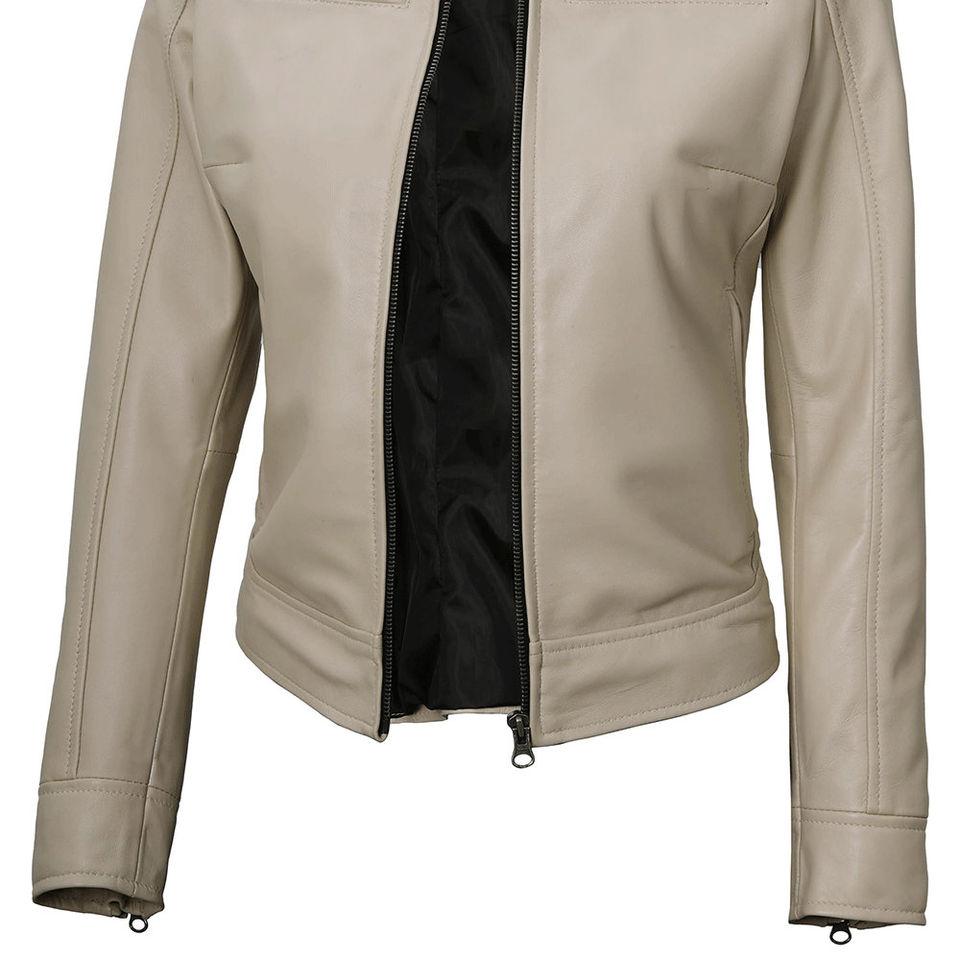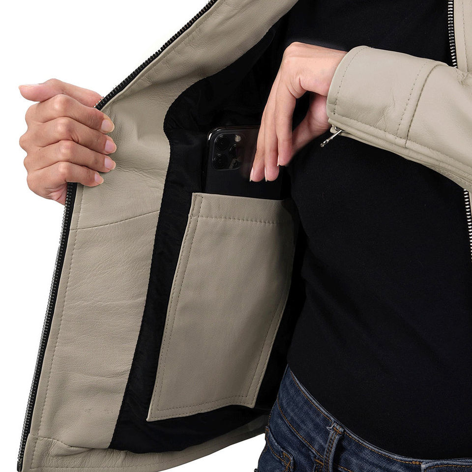 แจ็คเก็ตหนังมาตรฐานสำหรับผู้หญิง ระบายอากาศได้ดี สไตล์ไม่ซ้ำใคร ซิปด้านหน้า คอตั้ง แขนยาว ลุคสบายๆ มีกระเป๋าข้าง