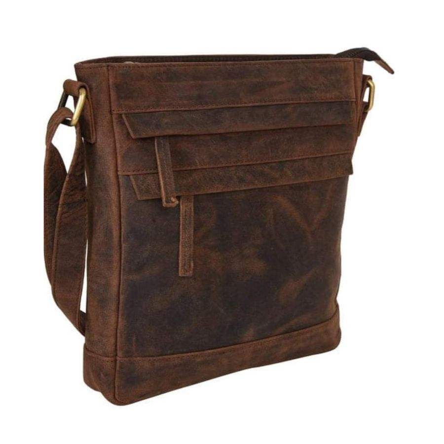 BS กระเป๋าสะพายไหล่หนังแท้กันน้ำสำหรับผู้หญิง, มีซิปปักโลโก้ลายเรขาคณิต