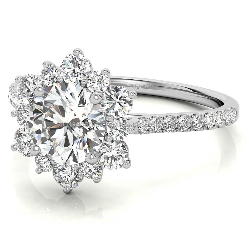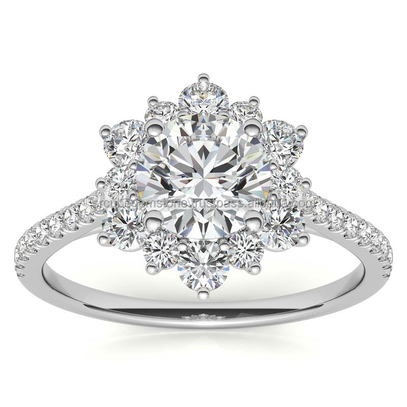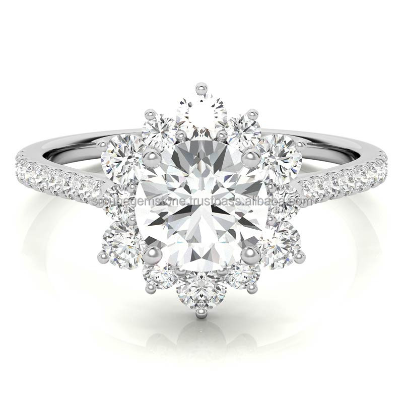 คุณภาพมาตรฐาน 3.75 Ct แหวนหมั้นตัดกลม 14k แหวนทองคําขาว Moissanite แหวนหมั้นจากอินเดีย