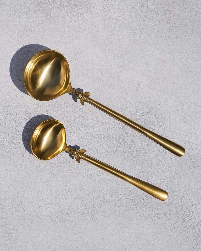 ช้อนเสิร์ฟสลัดทองเหลืองมาตรฐานพร้อมโต๊ะทองเหลืองสีทองตกแต่งร้านอาหารใช้ตามสั่ง