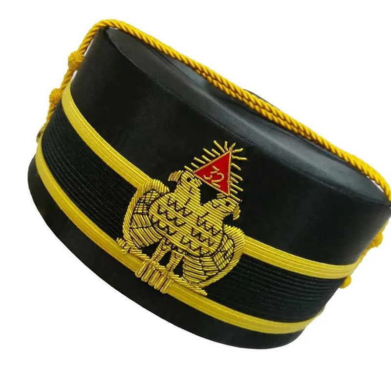 หมวกมงกุฎมาตรฐานคุณภาพสูงสำหรับราชอธิบดีแห่งราชอัครอาร์ค กำมะหยี่สีแดงและเชือกสีทอง สายปรับได้ หมวกทรงกลมสำหรับพิธีกรรมเมสัน