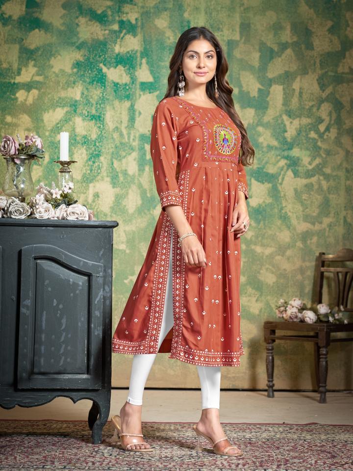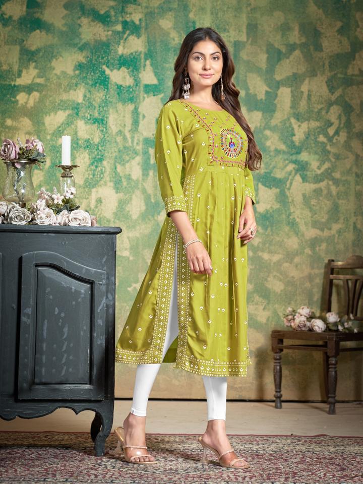ชุดพิมพ์ลาย kurti พร้อมงานปักที่ซับซ้อนสำหรับผู้หญิงสวมใส่สบายๆและปกติในสีที่ต่างกันขายดี