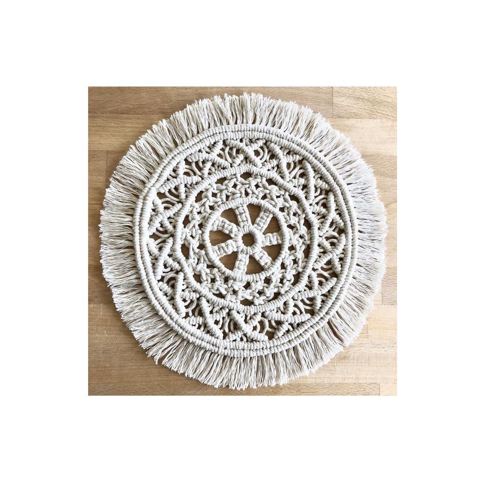 แผ่นกลมสำหรับตกแต่งโต๊ะแผ่นรองจานกลมลายแกลบข้าวโพดสไตล์โบฮีเมียนแผ่นรองจานธรรมชาติสำหรับตกแต่งโต๊ะ