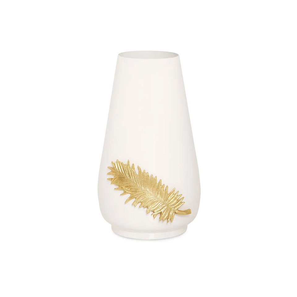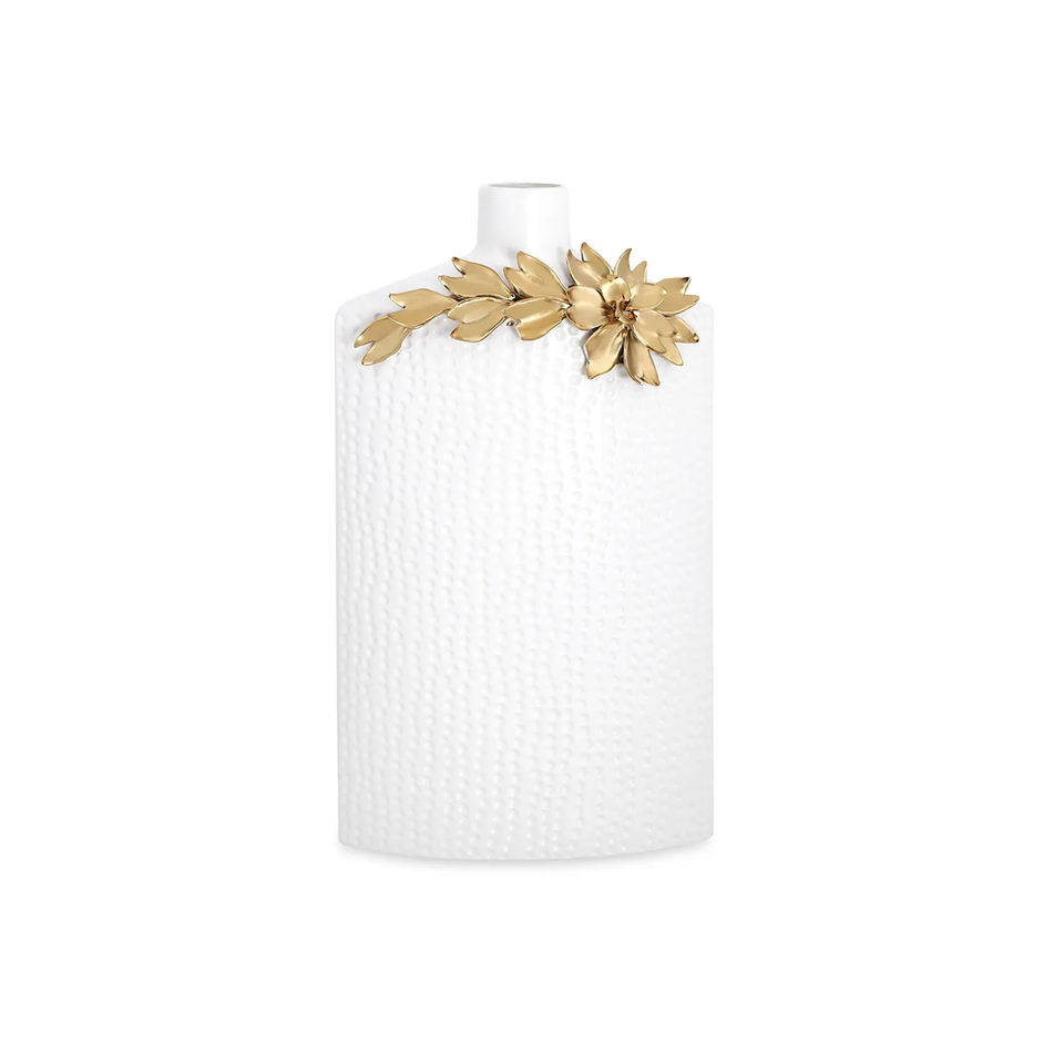 แจกันทุบโลหะสีขาวมาตรฐานพร้อมงานศิลปะดอกไม้สีทองสินค้าตกแต่งบ้านที่สามารถปรับแต่งได้