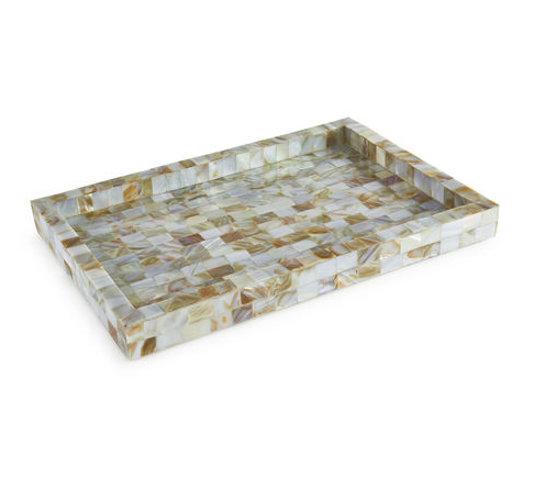 ถาดไม้คุณภาพมาตรฐานและถาดเปลือกหอยมุกทรงสี่เหลี่ยมพร้อมหูจับ สำหรับจัดเก็บ ของตกแต่งโต๊ะอาหาร