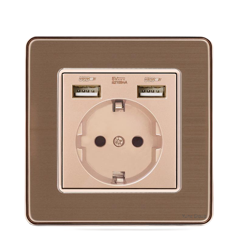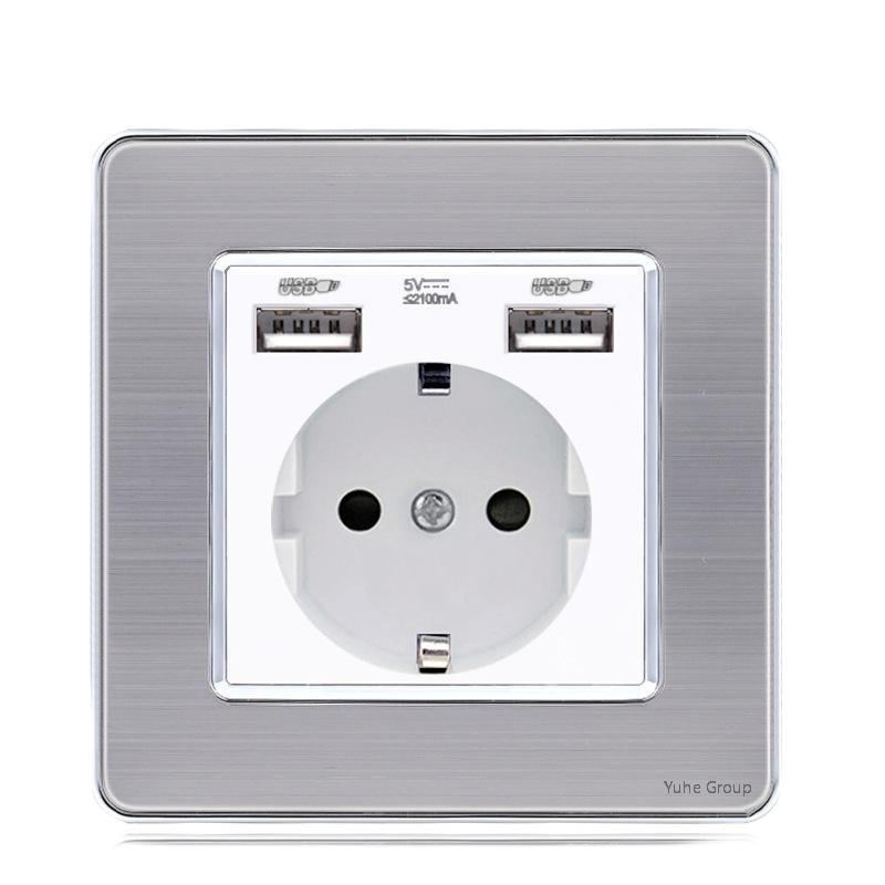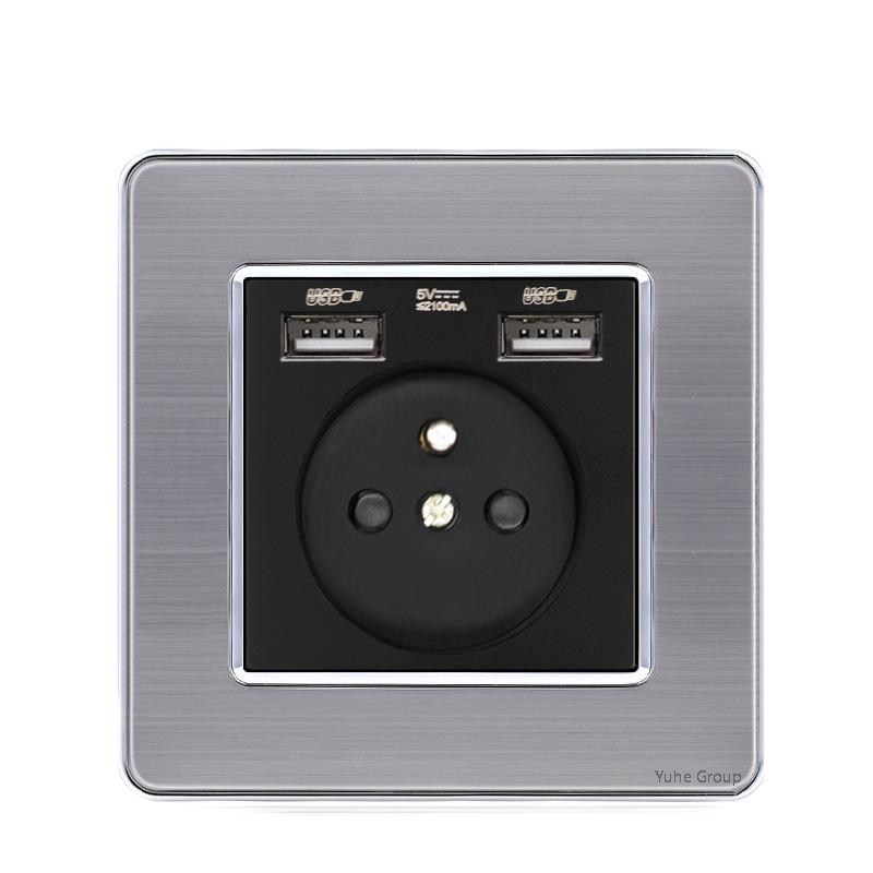 แผงสัมผัสแบบมาตรฐาน สแตนเลสขัดเงาสีเทา มาตรฐานยุโรป 86 ระดับ สวิตช์ติดผนังแบบฝรั่งเศส พร้อมเต้ารับ 16A รองรับการชาร์จเร็วแบบ Type C
