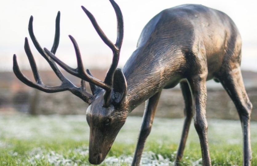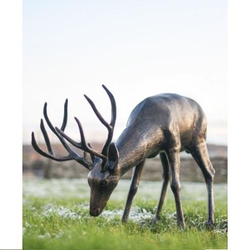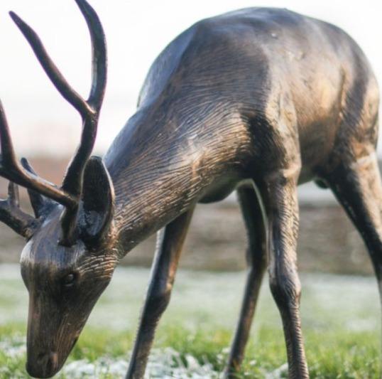 รูปปั้นกลางแจ้งรูปกวางเรนเดียร์ทำจากโลหะสีบรอนซ์แบบยืนสำหรับบ้านไร่และจัดแสดง
