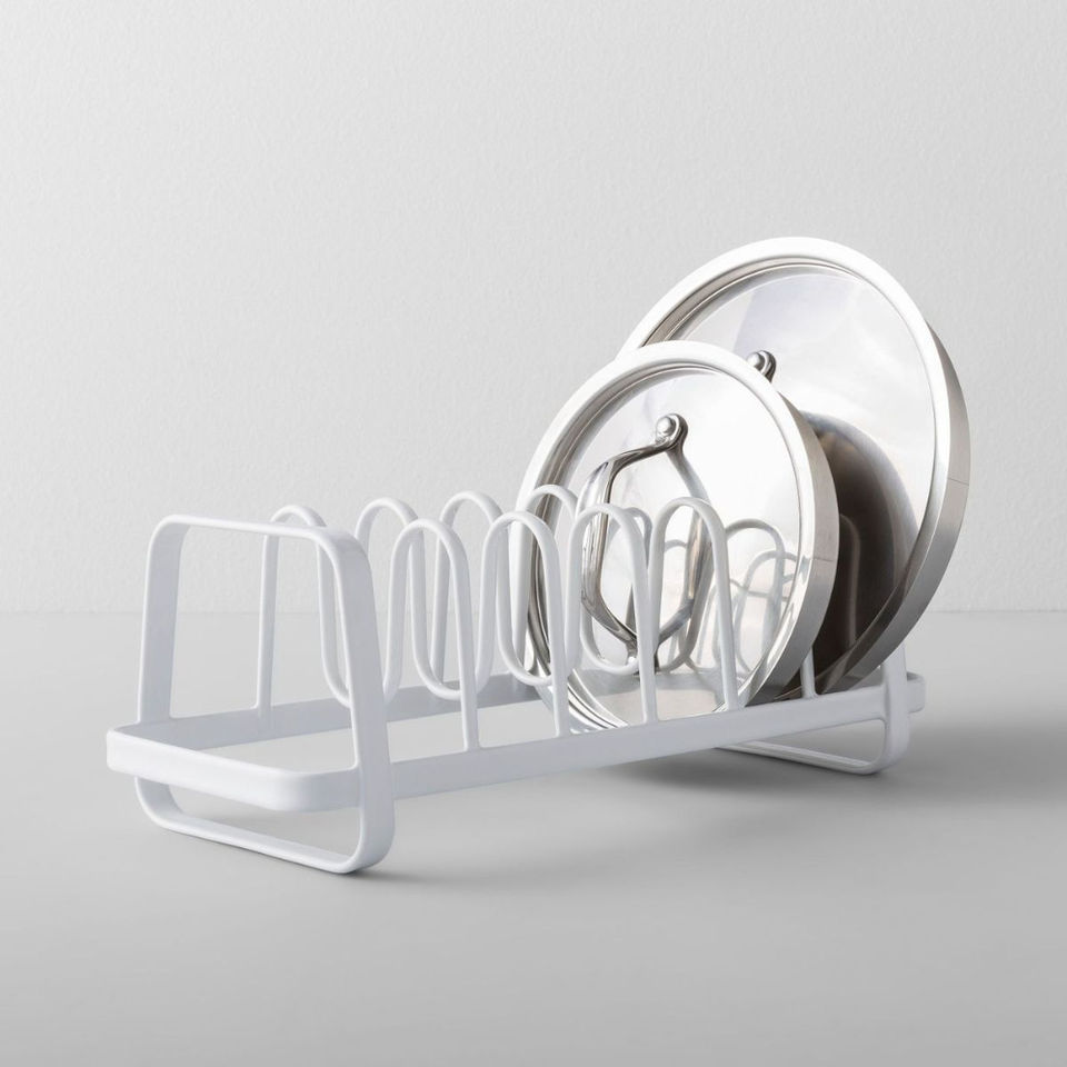 ที่วางฝาหม้อแบบตั้งพื้น วัสดุทองแดงเคลือบผิว ชั้นวางอุปกรณ์ทำครัวเหล็ก สำหรับจัดเก็บในครัว ประหยัดพื้นที่ ที่วางกระทะและฝาหม้อโลหะ