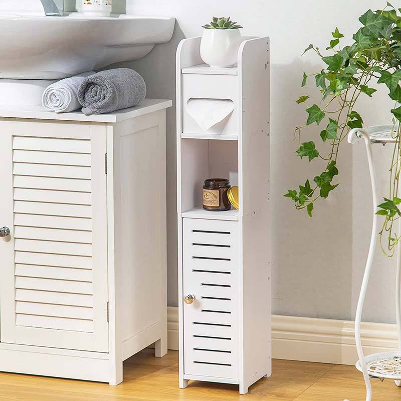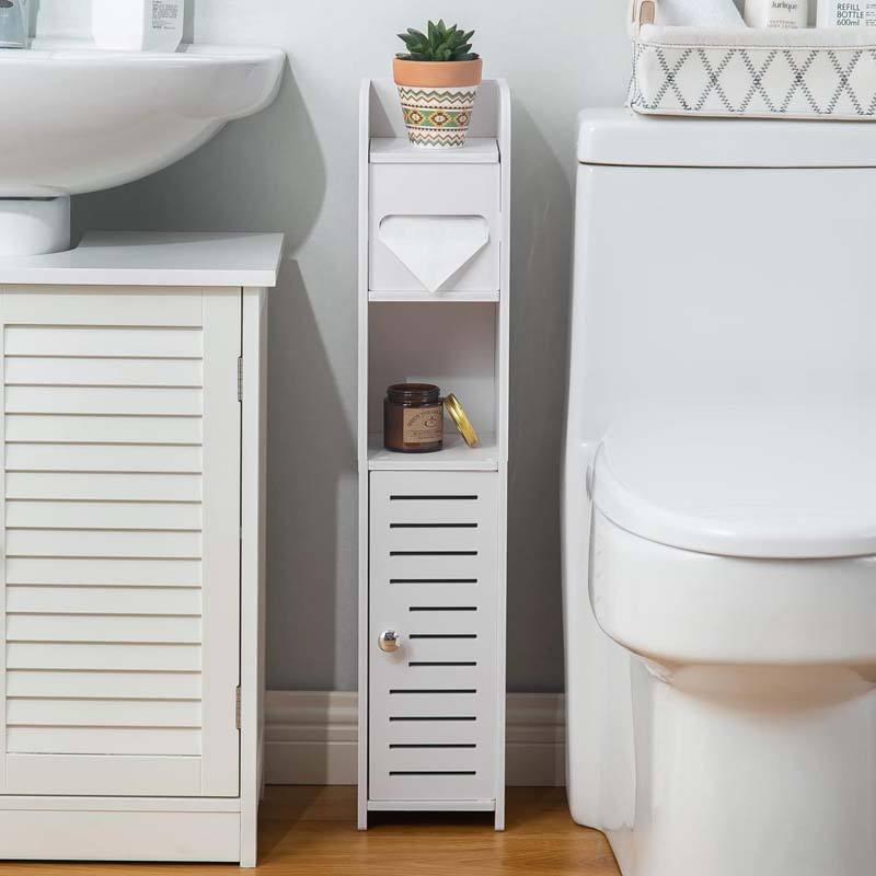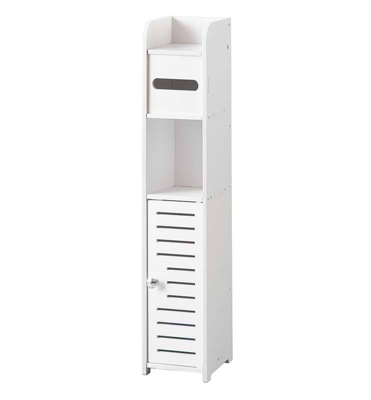 ชั้นวางกระดาษชำระพร้อมประตูข้างห้องน้ำแบบตั้งได้สำหรับห้องน้ำพื้นที่ขนาดเล็กพร้อมที่วางม้วนกระดาษชำระ