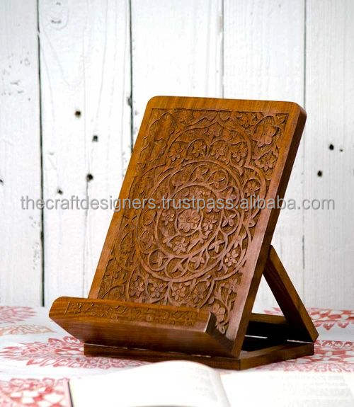 ที่วางตำราอาหารแบบตั้งพื้นทำจากไม้ ให้โครงสร้างที่สมดุลสำหรับตำราอาหารหนา ทำให้การทำอาหารง่ายขึ้นและเป็นระเบียบมากขึ้น