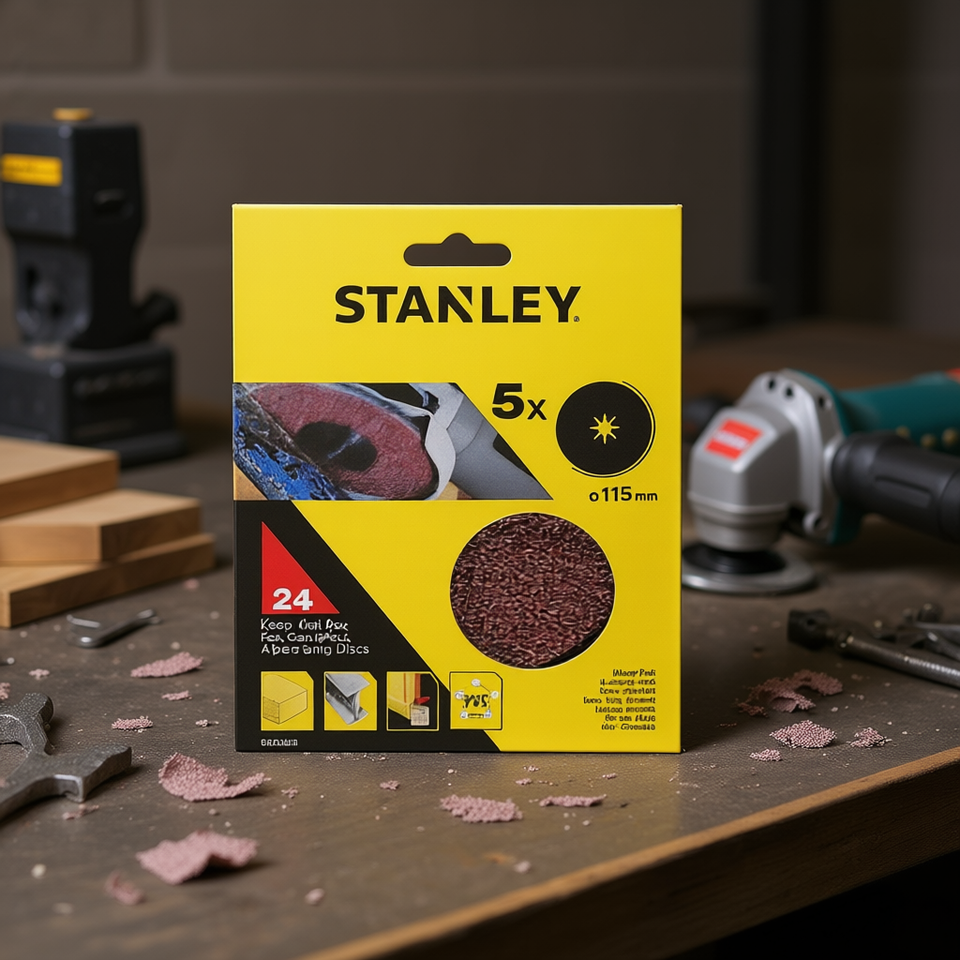 แผ่นขัดไฟเบอร์แบบแพ็คหลายชิ้น Stanley ขนาด 115 มม. สำหรับเครื่องเจียร