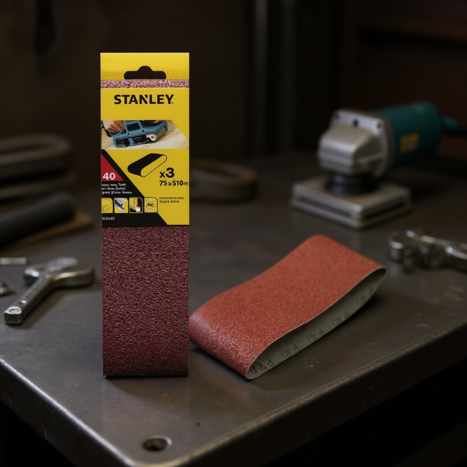 สายพานขัด Stanley ขนาด 75x510 มม. แบบแพ็คหลายชิ้น สำหรับเครื่องขัดสายพาน ใช้สำหรับงานขัด