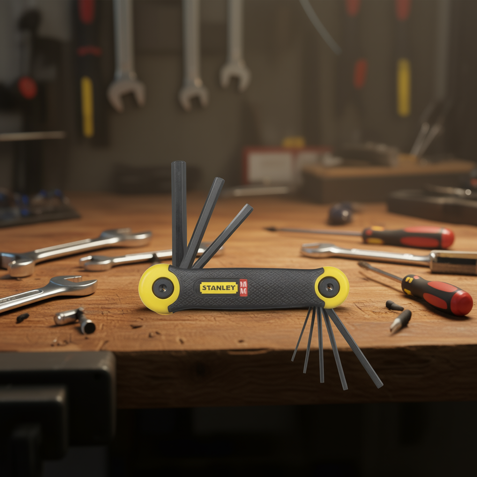 ชุดประแจหกเหลี่ยมพับได้ Stanley 8 ชิ้น พร้อมชุดเครื่องมืออเนกประสงค์ 12 ชิ้น สำหรับงานยึดติด
